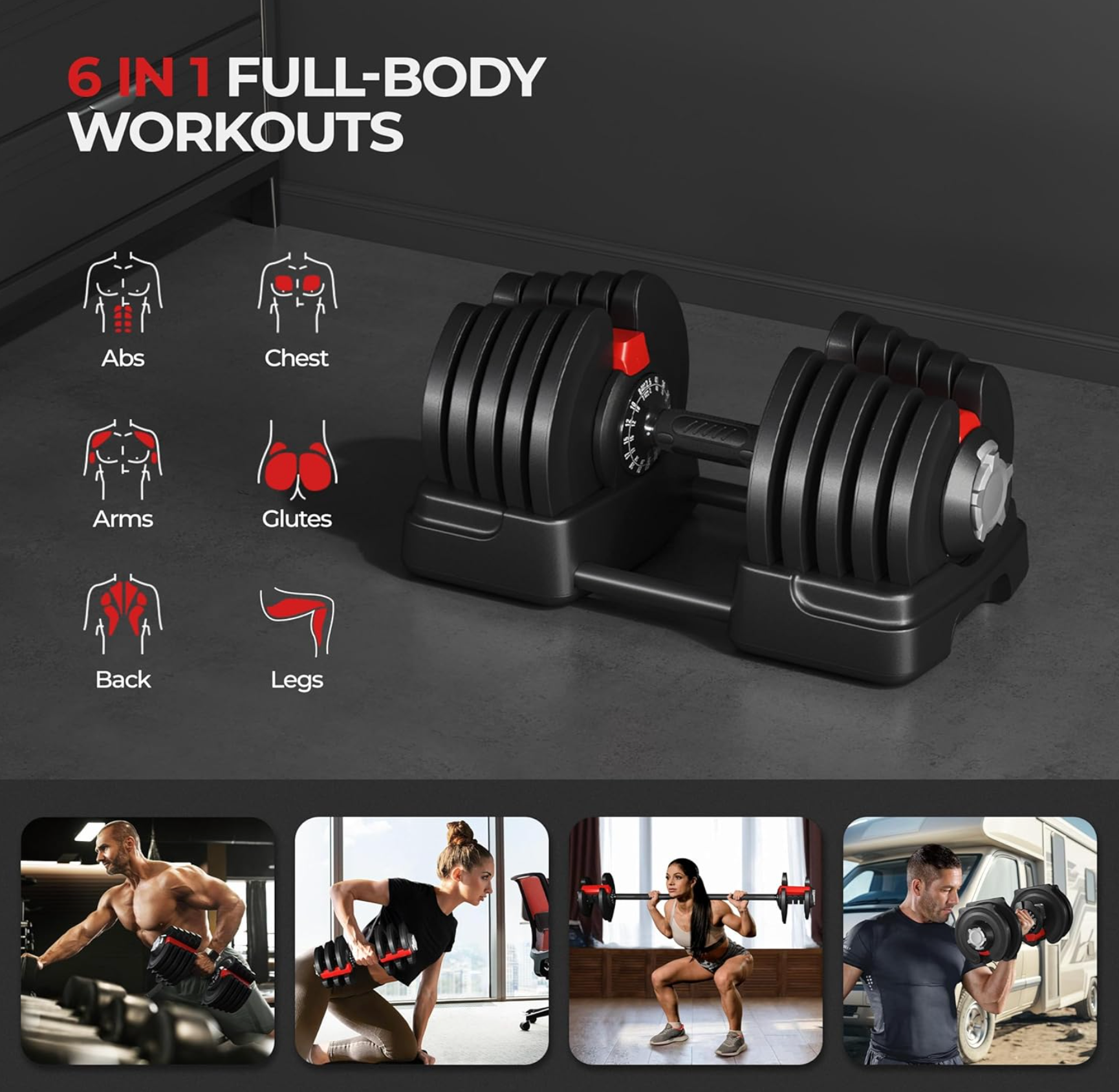 - 2-in-1 Versatility: Effortlessly switch between dumbbell and barbell modes for a full-body workout!