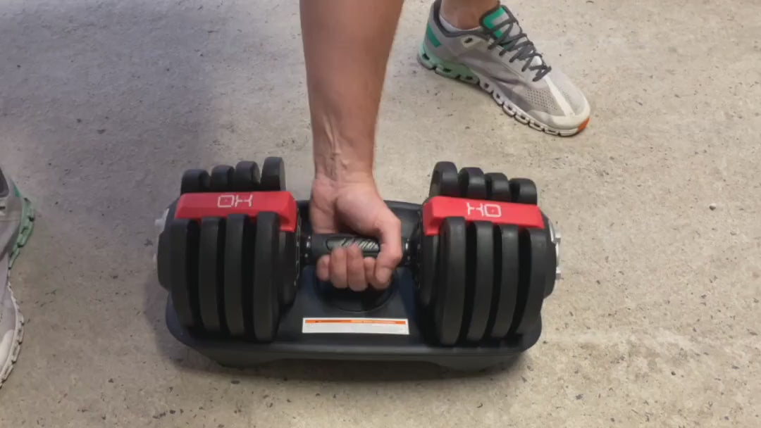 - DECLUTTER YOUR HOME GYM - Save space in your home gym by replacing the old home weight set stack with a single versatile 40kg adjustable dumbbell set that does it all. Just turn the grip handle to your desired weight setting and lift it out of the holder. The user manual is added for guidance.